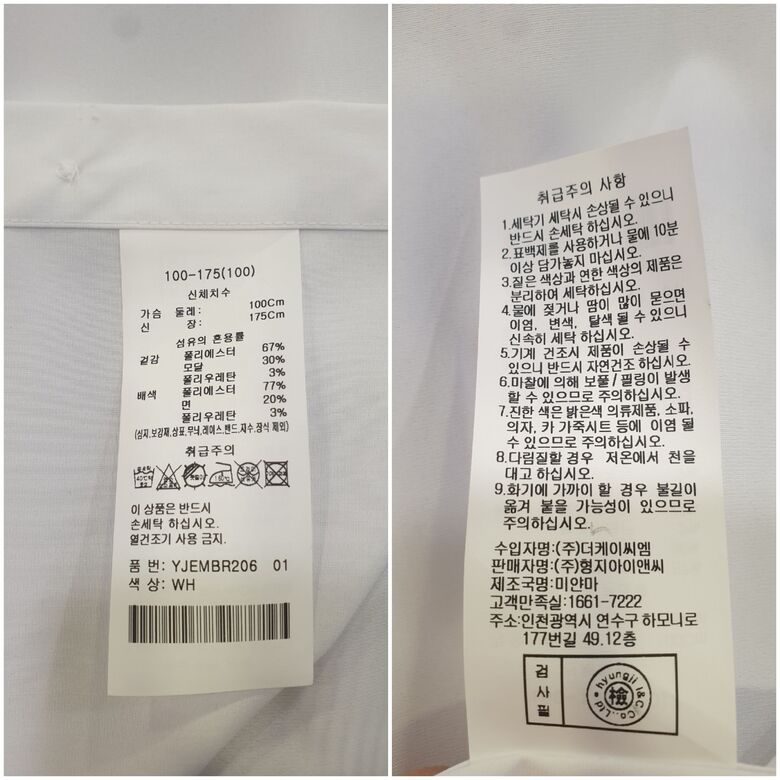 | 6. 세탁방법 및 취급시 주의사항 | 상품상세참조 |