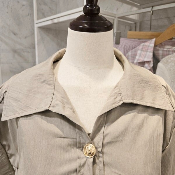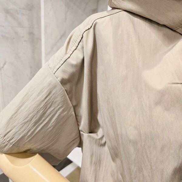 `배송 시 생길 수 있는 구김,대량 생산 특성상 생길 수 있는 미흡한 마감 처리,(실밥,본드자국,박음질,초크자국,단추마감)