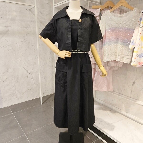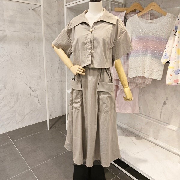 F5BSET507A_끈 롱원피스 크롭셔츠 세트