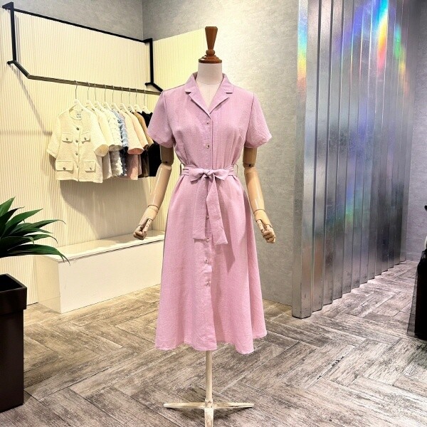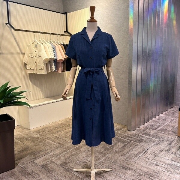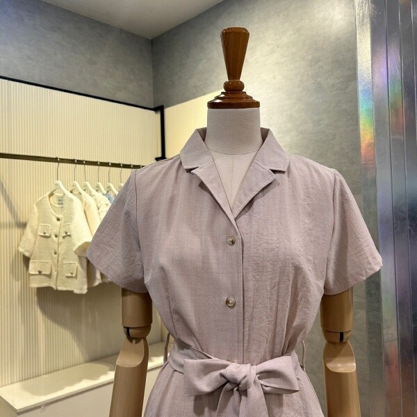 2025년 S/S 신상 벨티드 다트 카라 단추 원피스?입니다. 여성스러운 원피스로 포인트 아이템 입니다.?