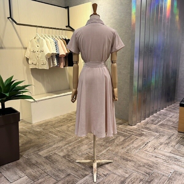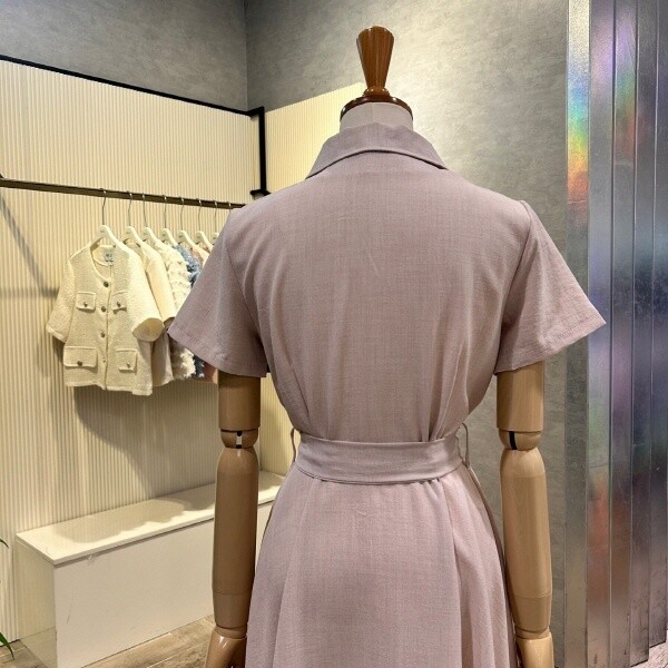 AOZ2HO89F_벨티드 다트 카라 단추 원피스