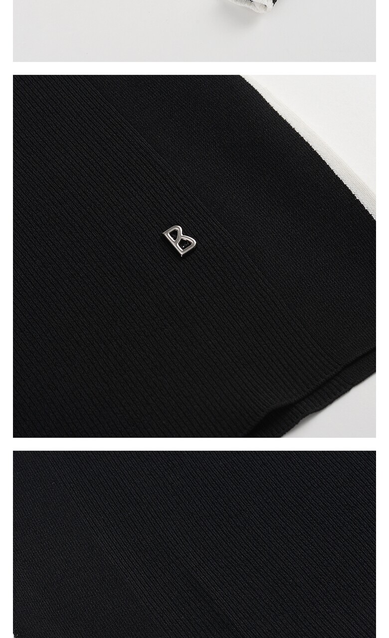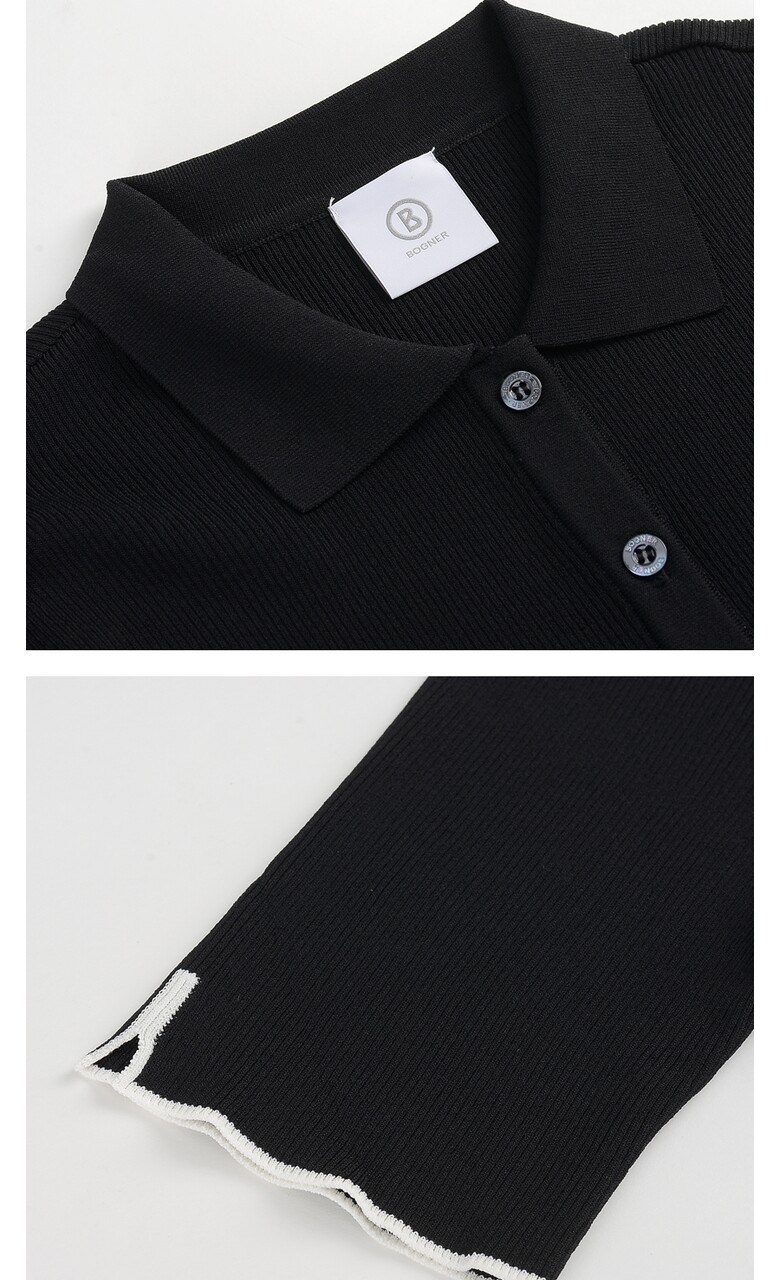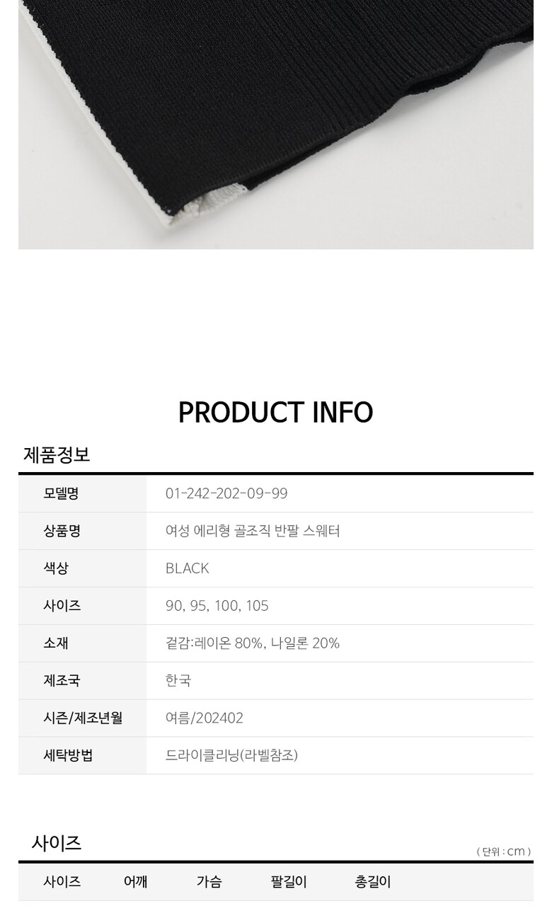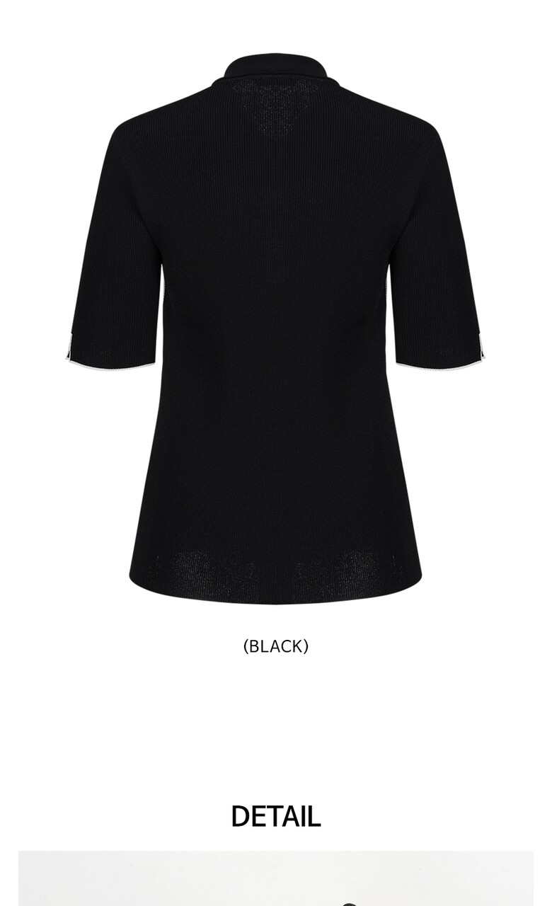 [보그너] 여성 에리형 골조직 반팔 스웨터 BLACK