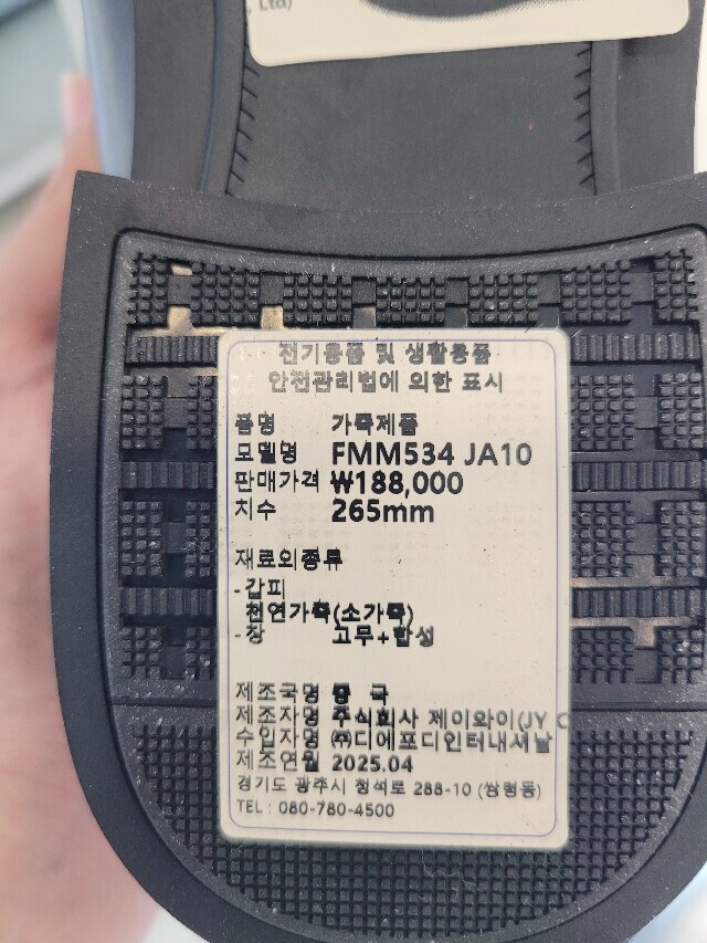 | 1. 제품 소재 (운동화인 경우에는 겉감, 안감을 구분하여 표시) | 상품상세참조 |