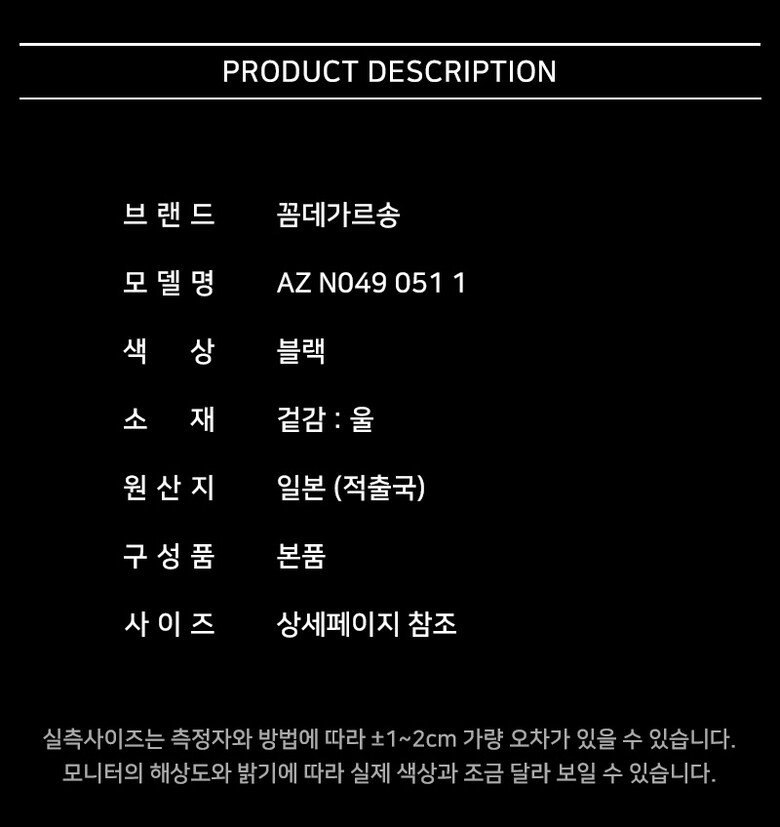 | 1. 제품 소재 (섬유의 조성 또는 혼용률을 백분율로 표시, 기능성인 경우 성적서 또는 허가서) | 상세페이지 참조 |