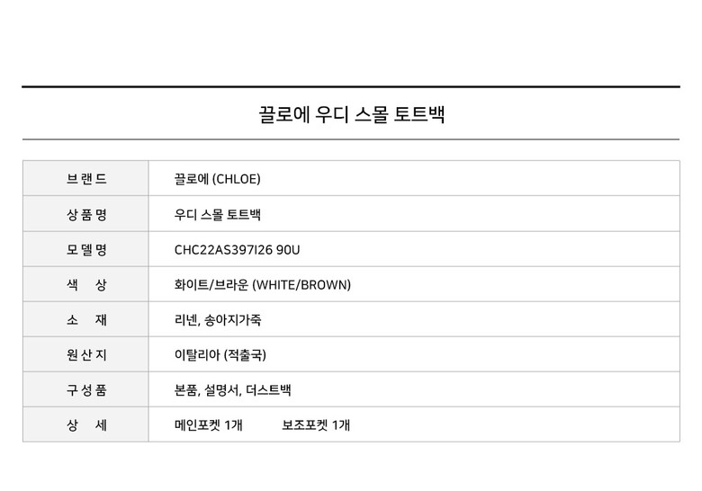 [명품] 끌로에 우디 스몰 토트백 화이트브라운 CHC22AS397I26 90U