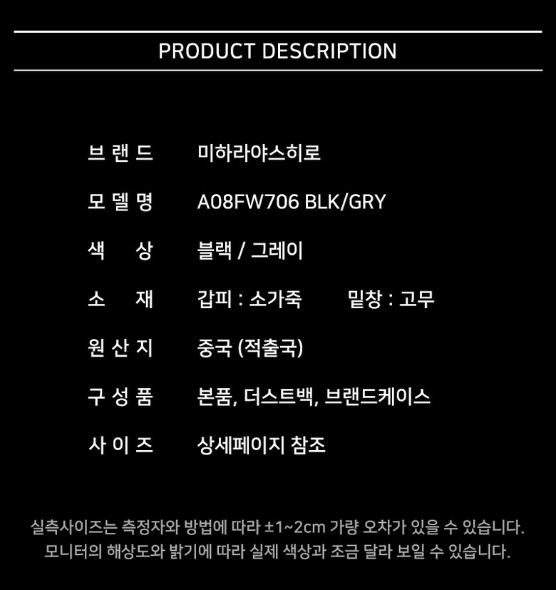 [명품] 25SS 미하라야스히로 웨인 레더 스니커즈 A08FW706 BLK GRY