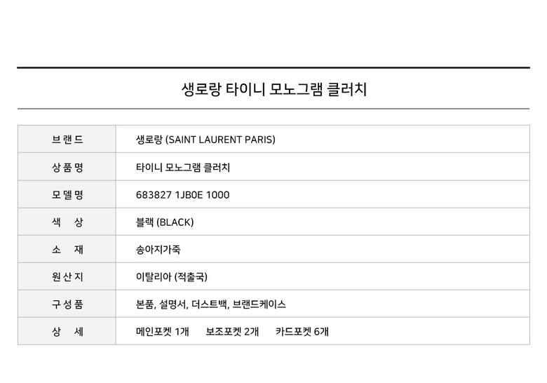 - #리본즈코리아 #6838271JB0E1000 #[명품] #생로랑 #타이니 #모노그램 #클러치 #블랙 #683827 #1JB0E #1000 #남성 #가방/핸드백 #클러치/파우치
