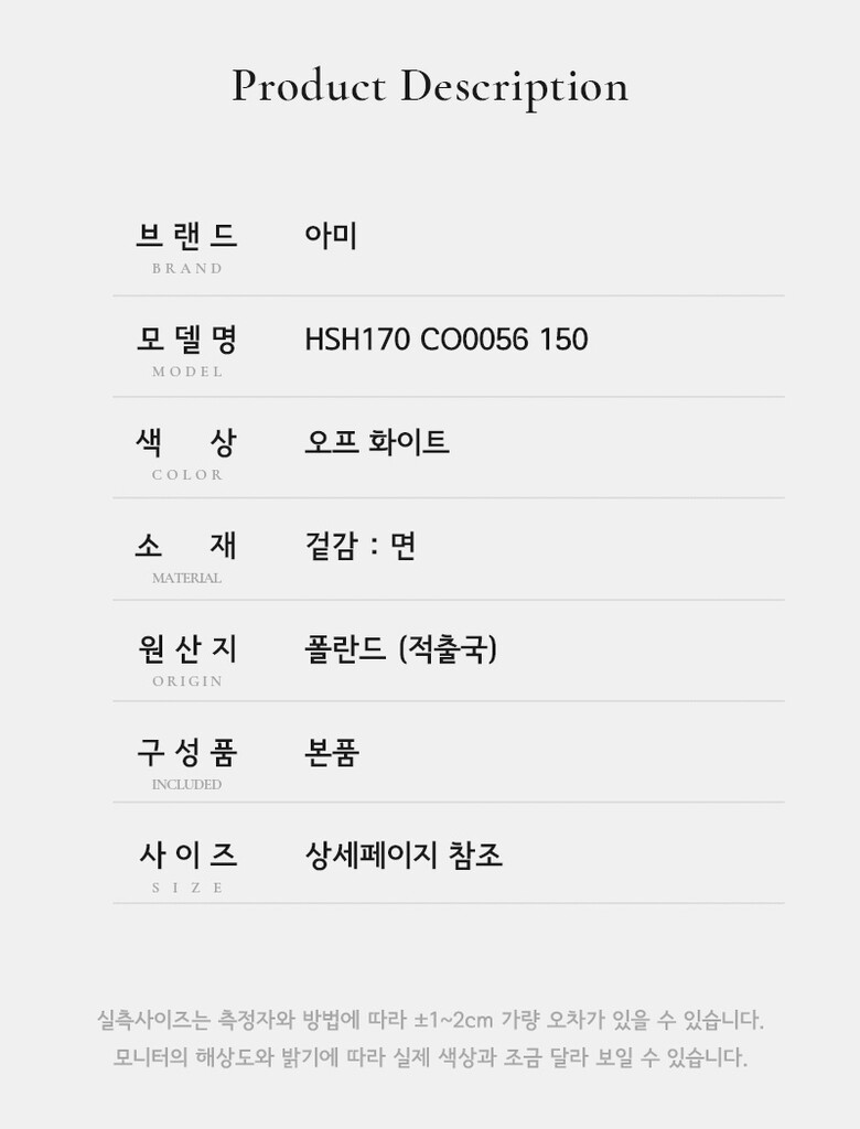 | 6. 세탁방법 및 취급시 주의사항 | 상품상세 참조 |