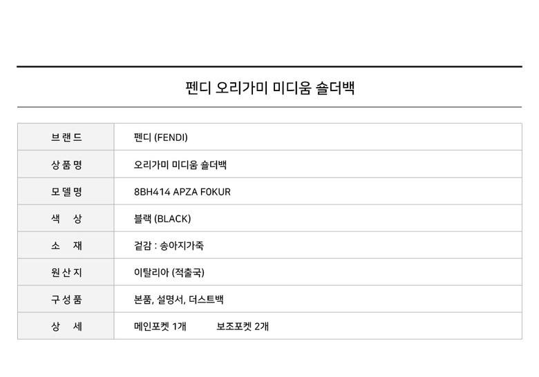 - #리본즈코리아 #8BH414APZAF0KUR #[명품] #펜디 #오리가미 #미디움 #숄더백 #블랙 #8BH414 #APZA #F0KUR #여성 #가방/핸드백 #숄더백/호보백