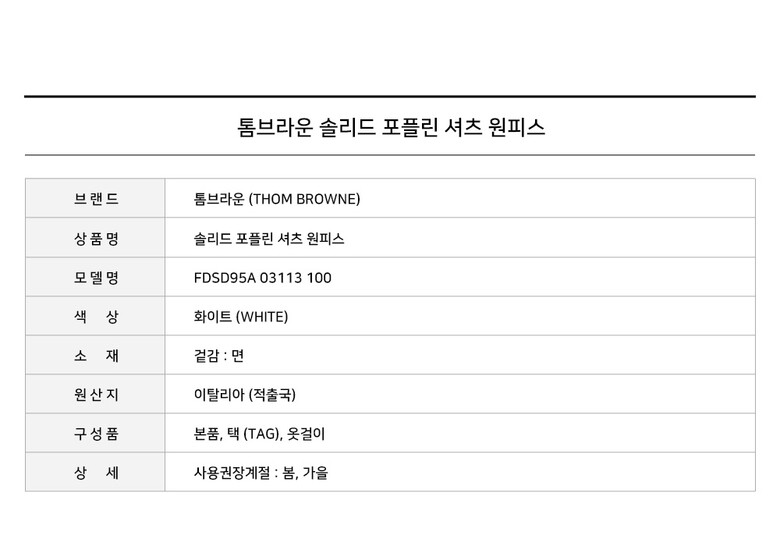 - #리본즈코리아 #FDSD95A03113100 #[명품] #톰브라운 #솔리드 #포플린 #셔츠 #원피스 #화이트 #FDSD95A #03113 #100 #여성 #의류 #블라우스/셔츠 #캐주얼셔츠