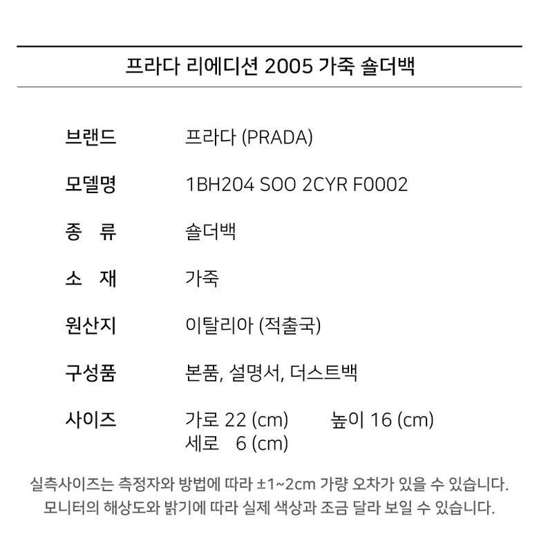 - #리본즈코리아 #1BH204SOO2CYRF0002 #[명품] #프라다 #리에디션 #2005 #가죽 #숄더백 #블랙 #1BH204 #SOO #2CYR #F0002 #여성 #가방/핸드백 #숄더백/호보백