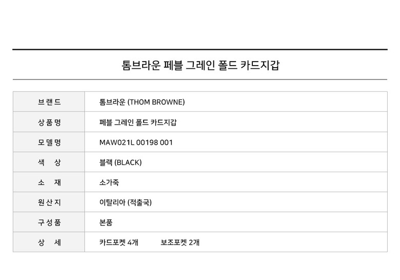 - #리본즈코리아 #MAW021L00198001 #[명품] #25SS #톰브라운 #페블 #그레인 #폴드 #카드지갑 #블랙 #MAW021L #00198 #001 #남성 #지갑 #카드/명함지갑 #카드지갑홀더