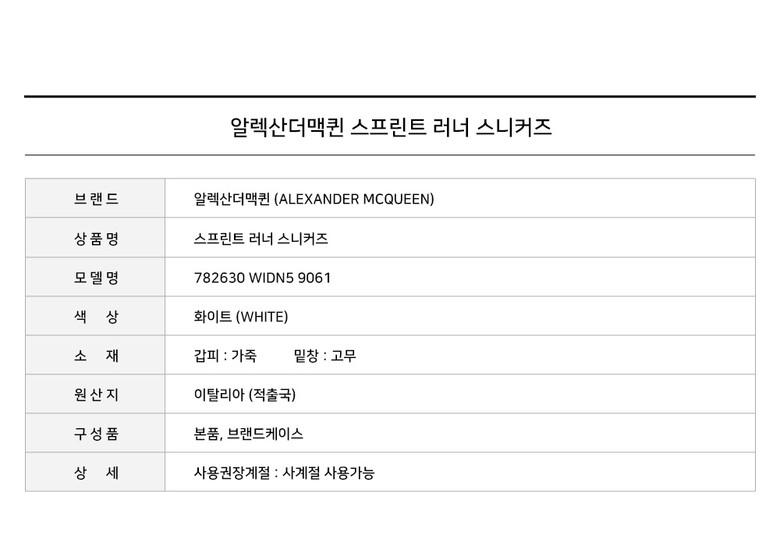 [명품] 알렉산더맥퀸 스프린트 러너 스니커즈 화이트 782630 WIDN5 9061