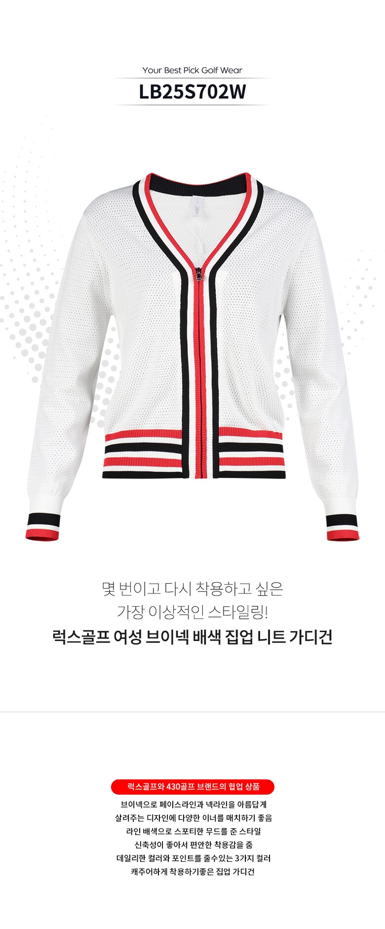 보스케 여성 봄 골프웨어 브이넥 배색 집업 니트 가디건 BQ25295