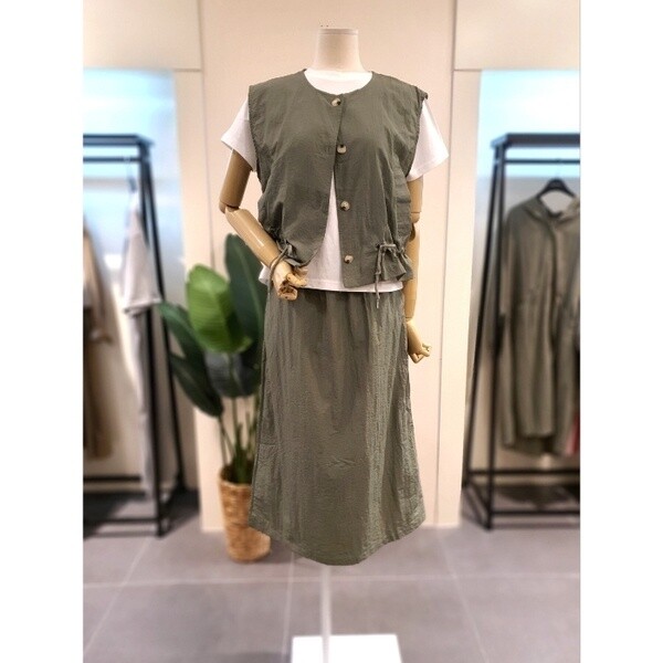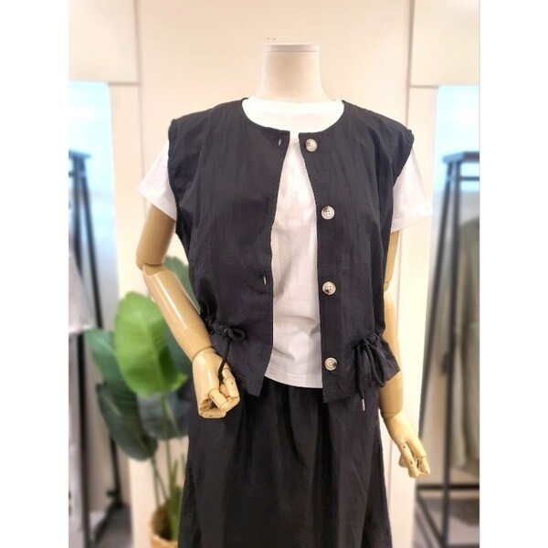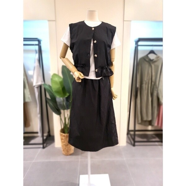 KESTP601BK_바스락 베스트 스커트 세트 블랙
