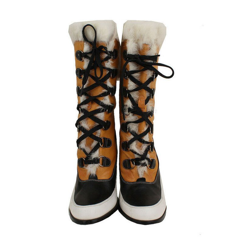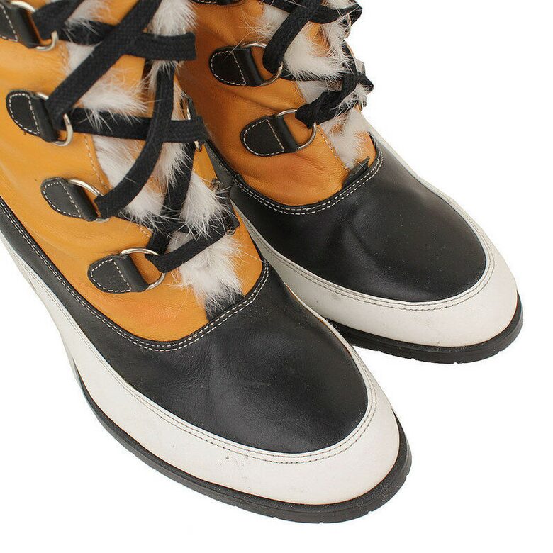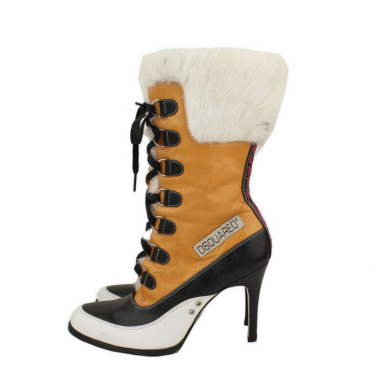 #리본즈코리아 #731437-907795 #[중고명품] #디스퀘어드2 #탠저린오렌지 #퍼장식 #레이스업 #미들부츠 #38 #여성 #슈즈 #부츠/부티 #워커