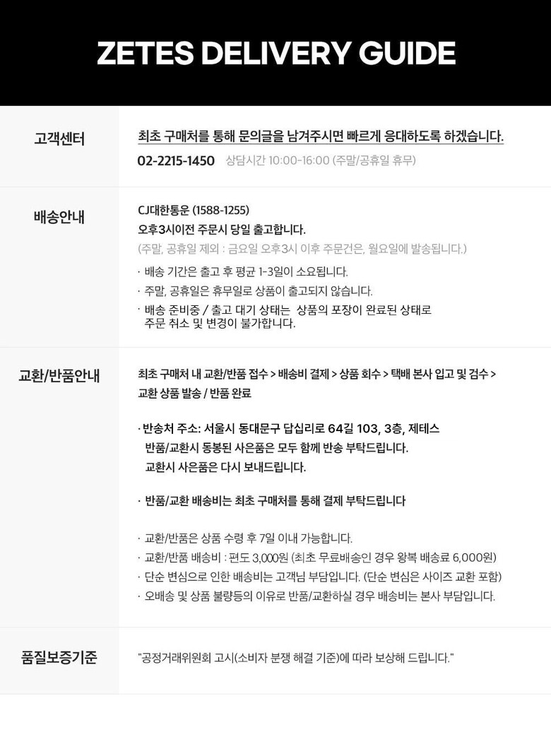 상품불량에 의한 반품, A/S, 품질보증 및 피해보상 등에 관한 사항은 소비자 분쟁해결기준(공정거래위원회 고시) 구매자가 미성년자인 경우에는 상품 구입시 법정대리인이 동의하지 아니하면 미성년자 본인 또는 법정대리인이 구매취소 할 수 있습니다. |