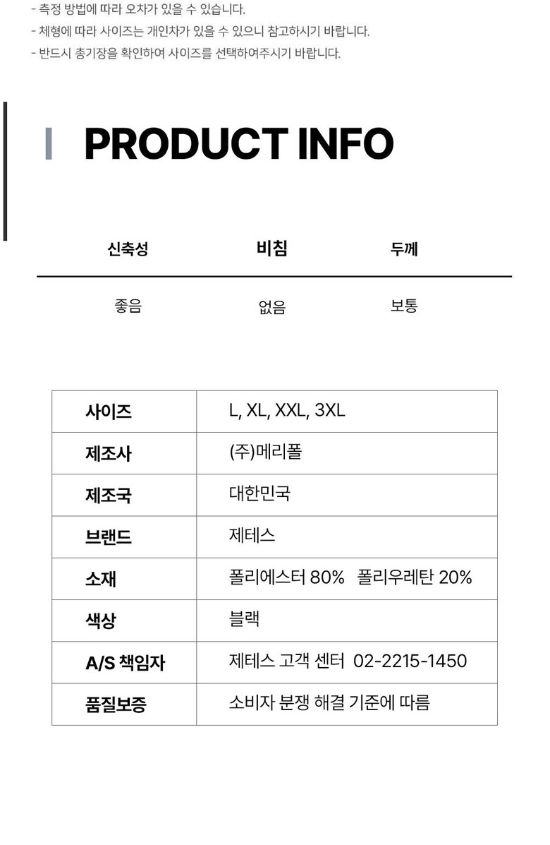 1. 제품 소재 (섬유의 조성 또는 혼용률을 백분율로 표시, 기능성인 경우 성적서 또는 허가서) | 폴리에스터 80% , 폴리우레탄 20% |