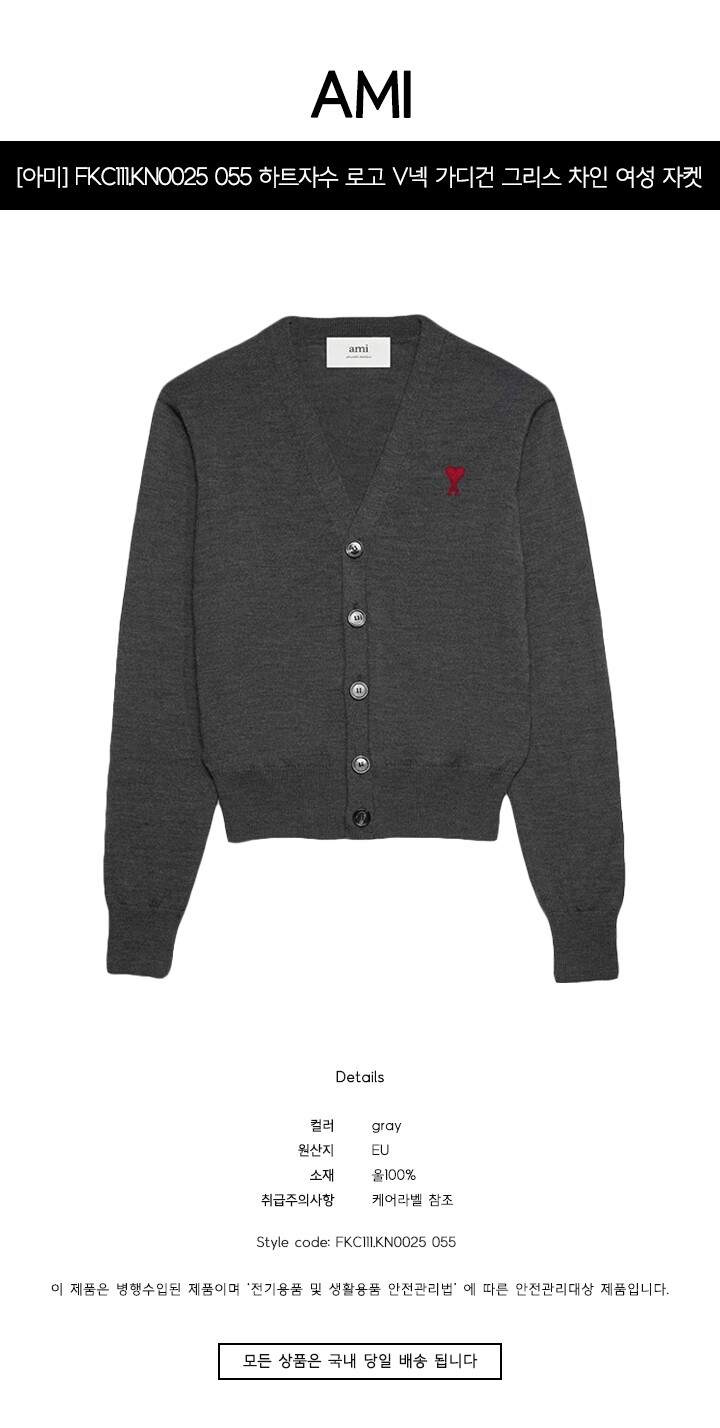 [명품] FKC111.KN0025 055 하트자수 로고 V넥 가디건 그리스 차인 여성 자켓 /