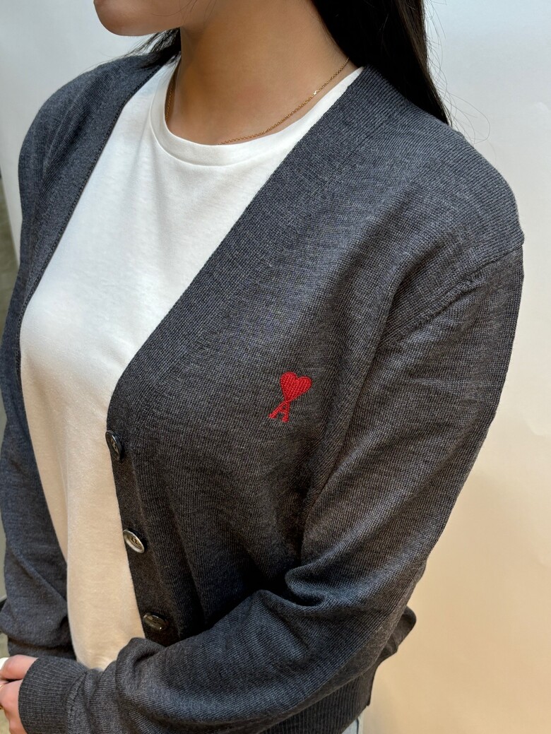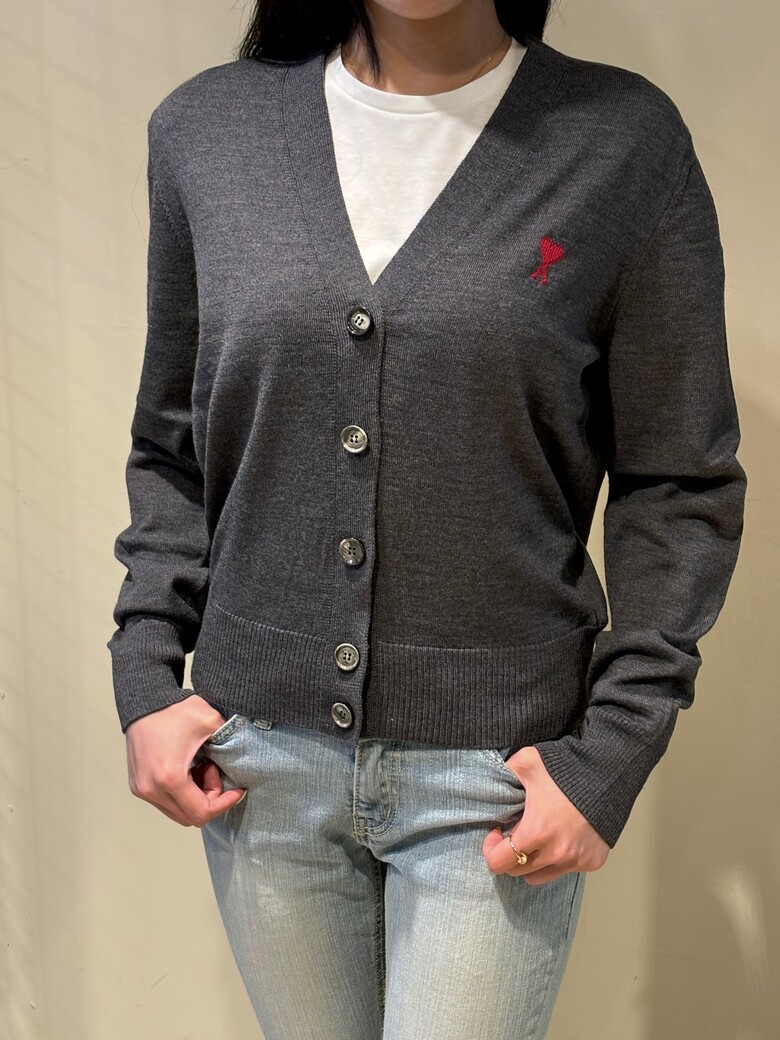 - #리본즈코리아 #FKC111.KN0025055 #[명품] #FKC111.KN0025 #055 #하트자수 #로고 #V넥 #가디건 #그리스 #차인 #여성 #자켓 #/ #의류 #니트/가디건