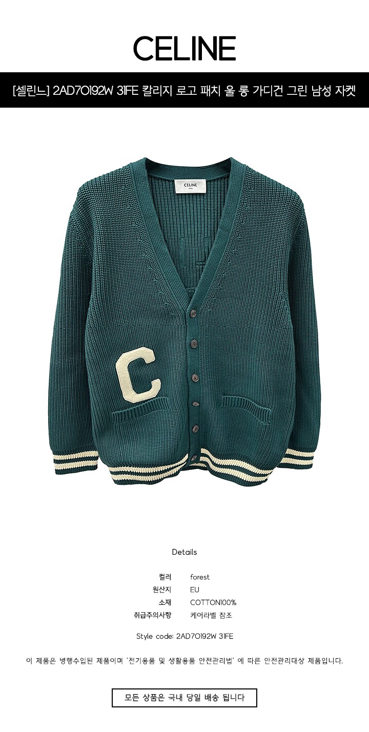 - #리본즈코리아 #2AD7O192W31FE #[명품] #2AD7O192W #31FE #칼리지 #로고 #패치 #울 #롱 #가디건 #그린 #남성 #자켓 #/ #의류 #니트/가디건