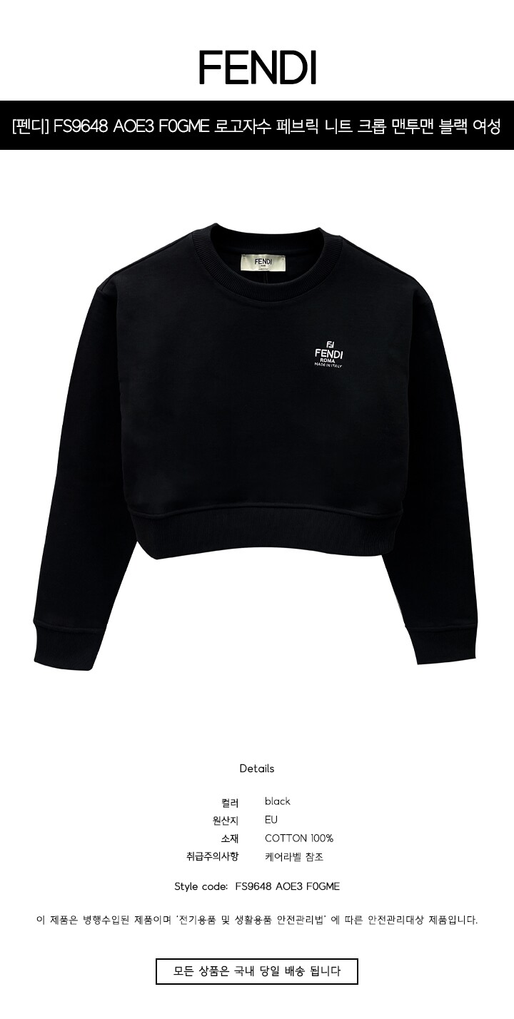 [명품] FS9648 AOE3 F0GME 로고자수 페브릭 니트 크롭 맨투맨 블랙 여성 맨투맨 /
