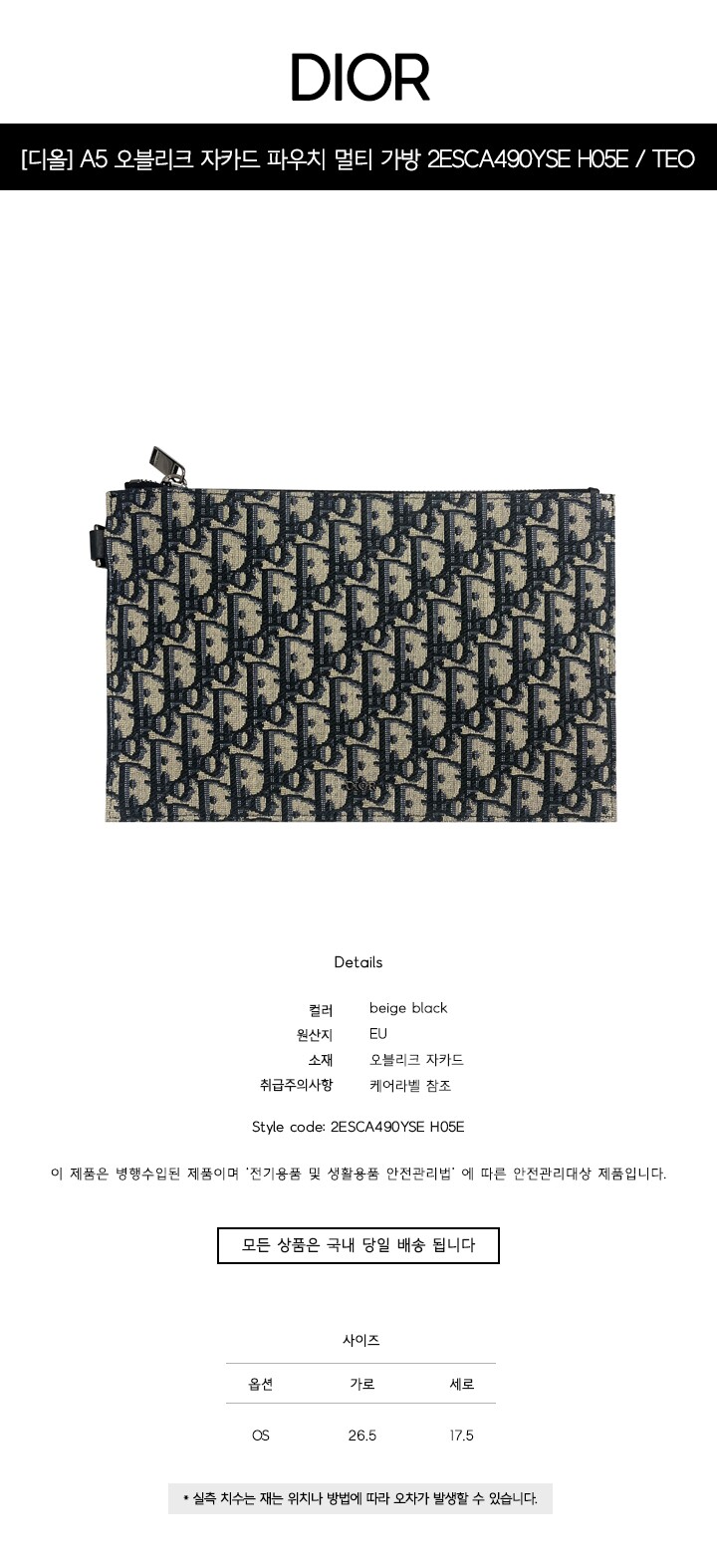 [명품] A5 오블리크 자카드 파우치 멀티 가방 2ESCA490YSE H05E /