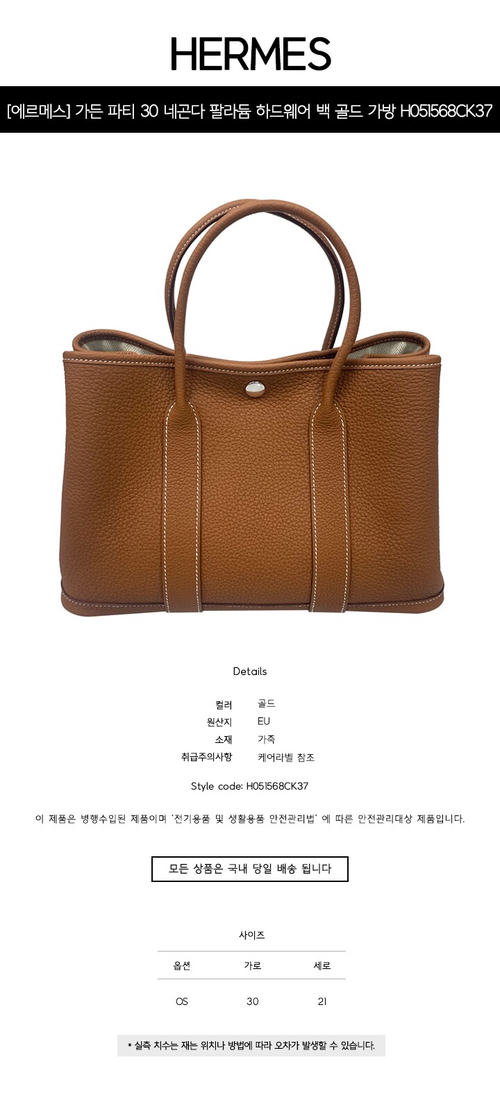 - #리본즈코리아 #H051568CK37 #[명품] #가든 #파티 #30 #네곤다 #팔라듐 #하드웨어 #백 #골드 #가방 #H051568CK37 #/ #TRN #여성 #가방/핸드백 #토트백