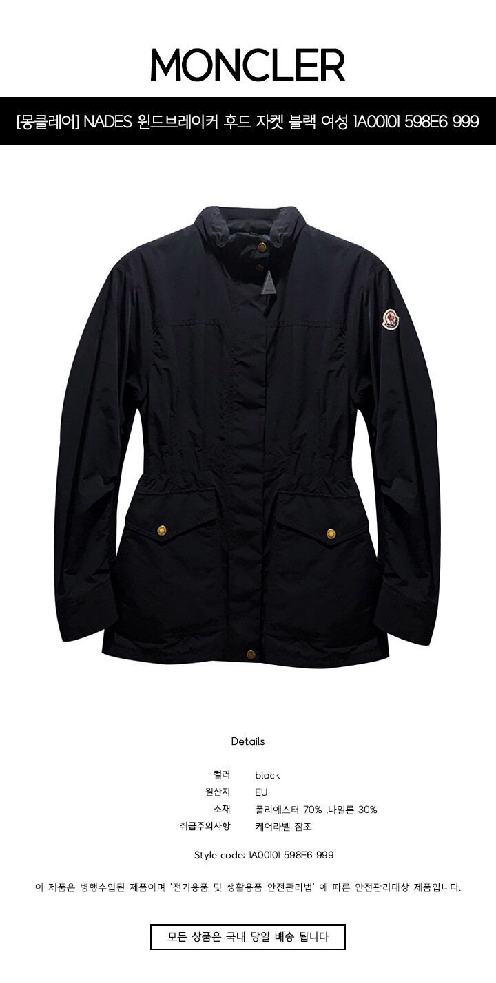 - #리본즈코리아 #1A00101598E6999 #[명품] #NADES #윈드브레이커 #후드 #자켓 #블랙 #여성 #1A00101 #598E6 #999 #/ #TLC #의류 #아우터 #캐주얼자켓