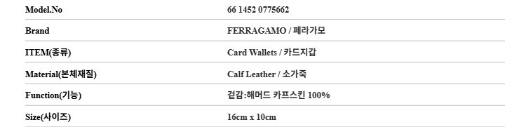 페라가모 66 1452 0775662 (661452 775662) 간치니 카드지갑
