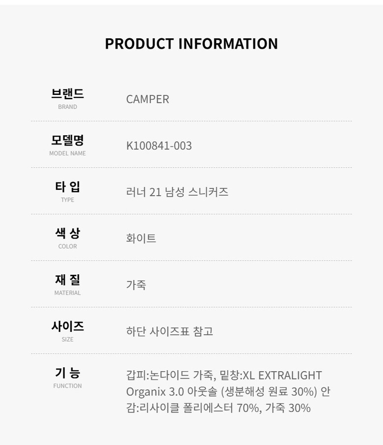 | 4. 제조사 | 캠퍼/MACHO-병행수입 |