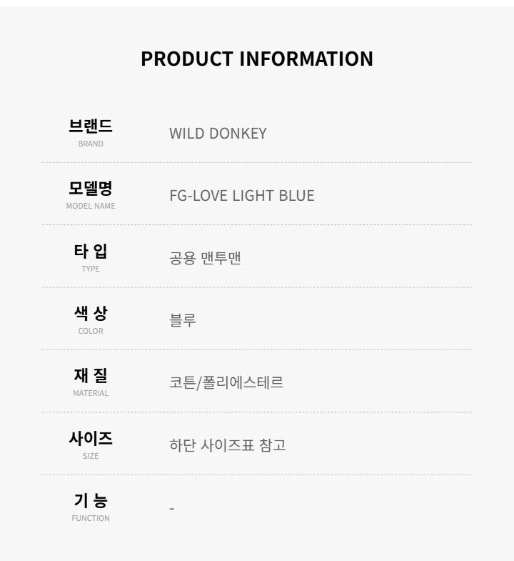 와일드동키 FG-LOVE LIGHT BLUE 공용 맨투맨
