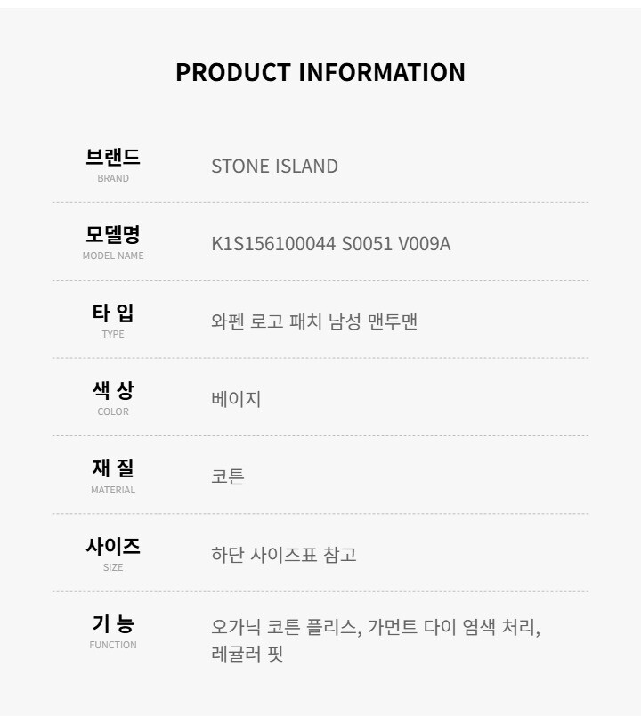 스톤아일랜드 K1S156100044 S0051 V009A 와펜 로고 패치 남성 맨투맨