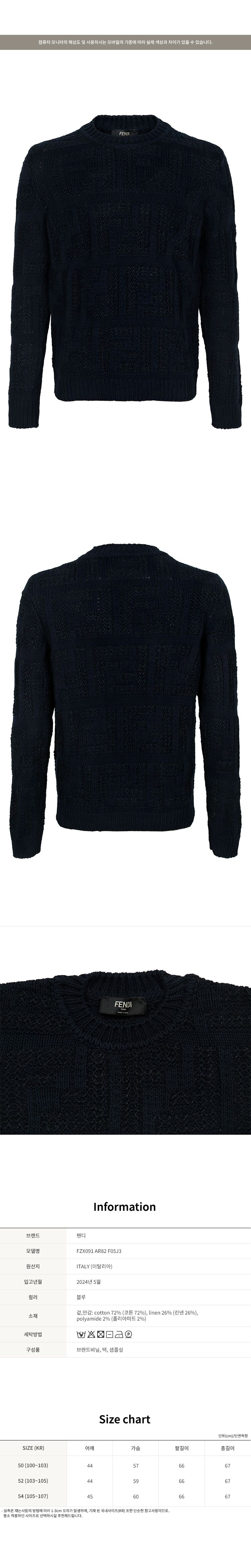 [명품] 펜디 블루 FF 리넨 스웨터 FZX091 AR82 F05J3