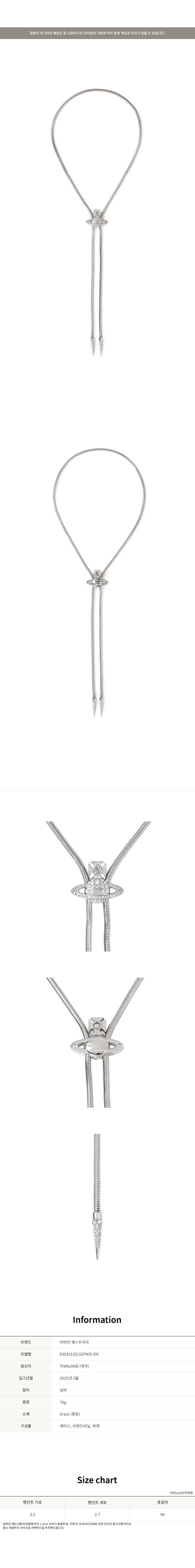 - #리본즈코리아 #6301012Q02P409SM #[명품] #25SS #비비안웨스트우드 #실버 #볼로 #타이 #6301012Q #02P409 #SM #여성 #패션잡화 #넥타이 #정장넥타이