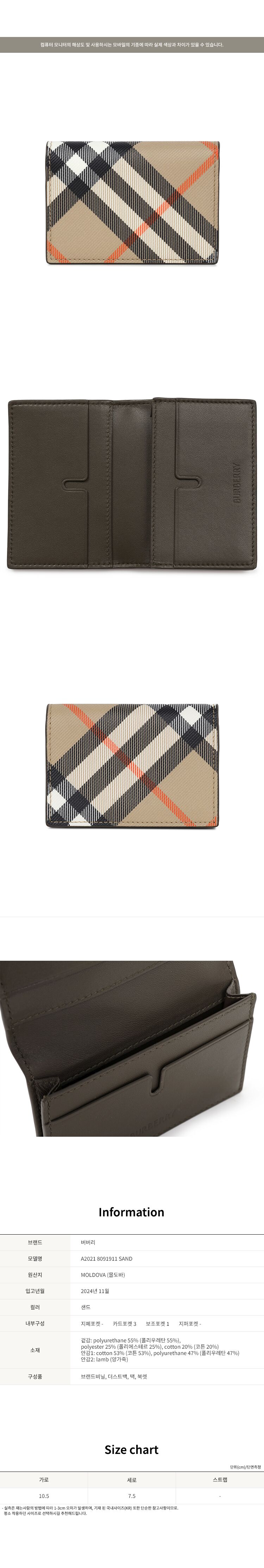 [명품] 25SS 버버리 샌드 체크 카드 지갑 8091911 SAND