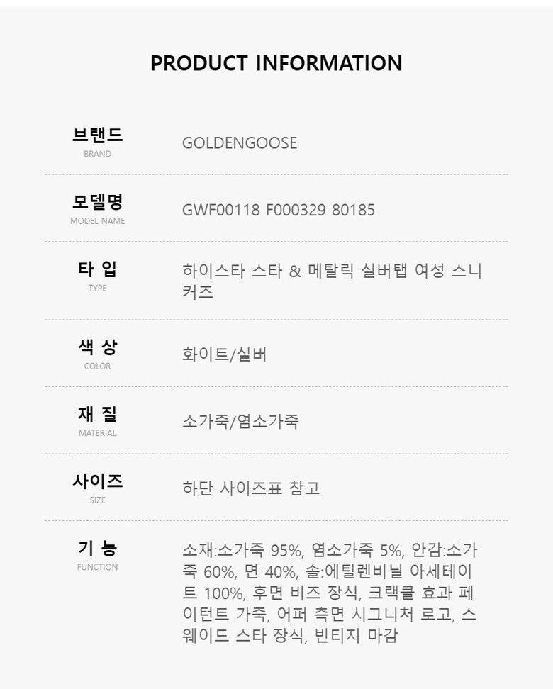 - #리본즈코리아 #GWF00118F00032980185 #[명품] #골든구스 #GWF00118 #F000329 #80185 #하이스타 #메탈릭 #실버탭 #스니커즈 #여성 #슈즈 #로우탑스니커즈