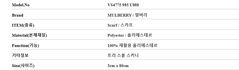 [명품] 멀버리 VS4775 985 U888 트리 스몰 스키니 스카프
