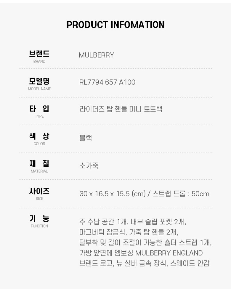[명품] 멀버리 RL7794 657 A100 라이더즈 실키 그레인 미니 탑 핸들 토트백