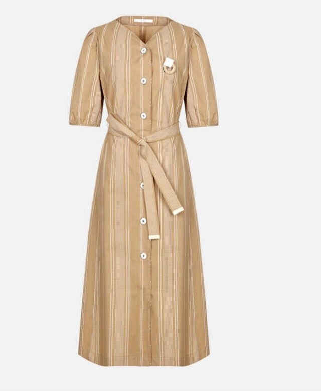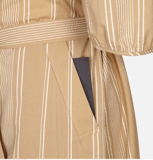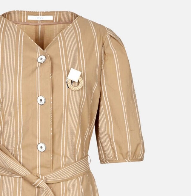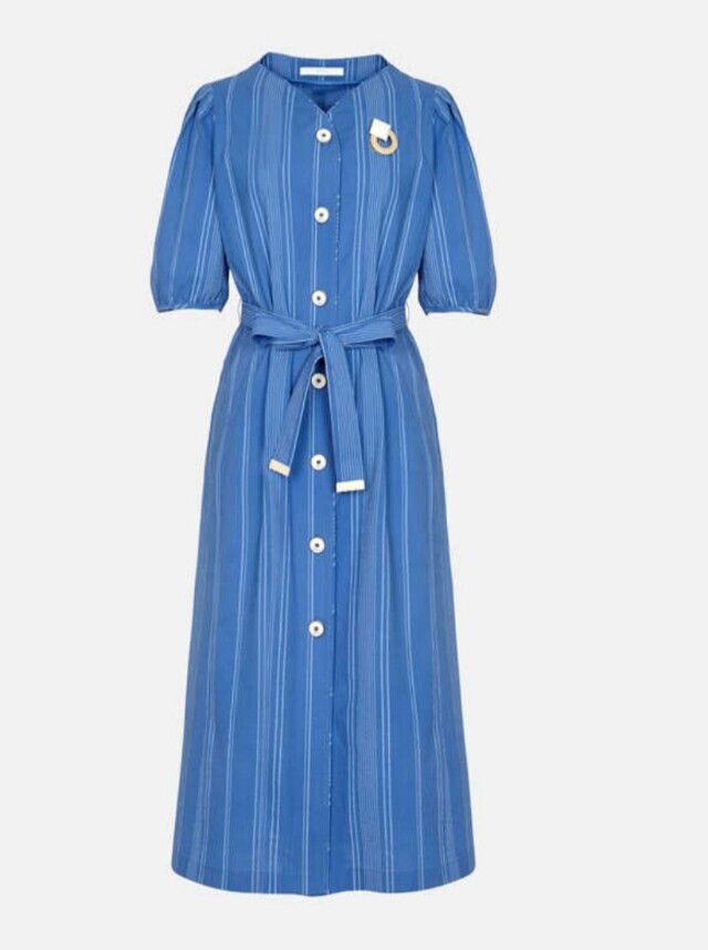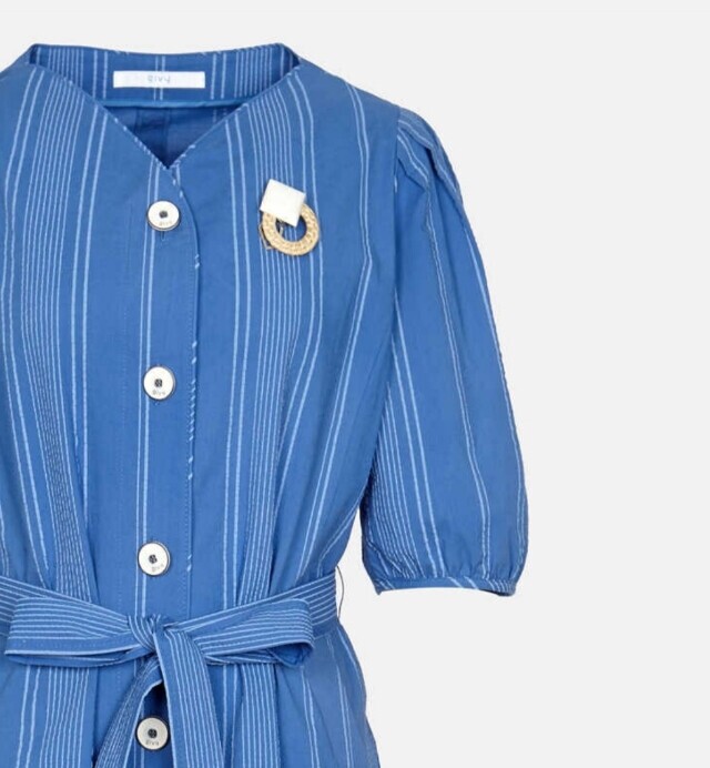 은은한 스트라이프 패턴이 눈길을 끄는 원피스입니다