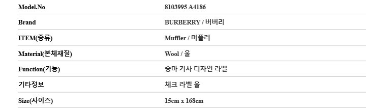 [명품] 버버리 8103995 A4186 체크 라벨 울 머플러