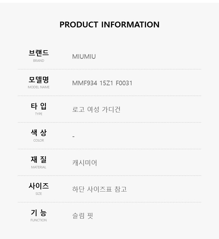 [명품] 미우미우 MMF934 15Z1 F0031 인타르시아 로고 여성 가디건