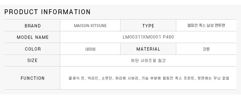 [명품] 메종키츠네 LM00311KM0001 P480 챔피언 폭스 프린트 남성 맨투맨