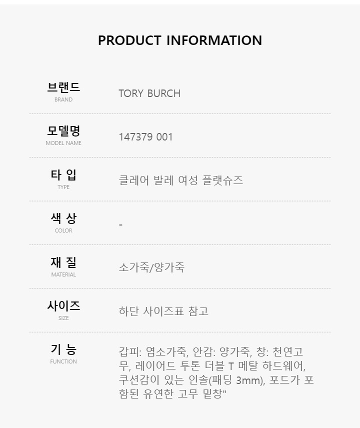 [명품] 토리버치 147379 001 클레어 발렛 플랫슈즈