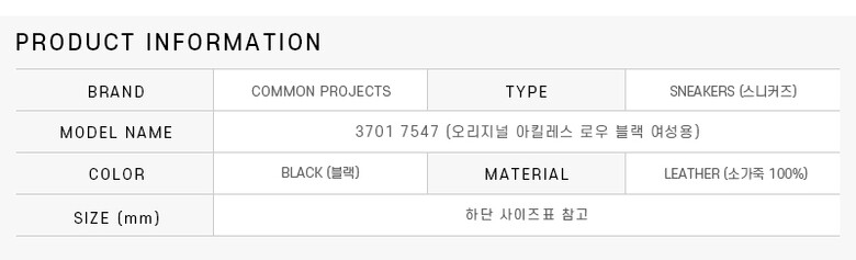 [명품] 커먼프로젝트 3701 7547 오리지널 아킬레스 로우 스니커즈