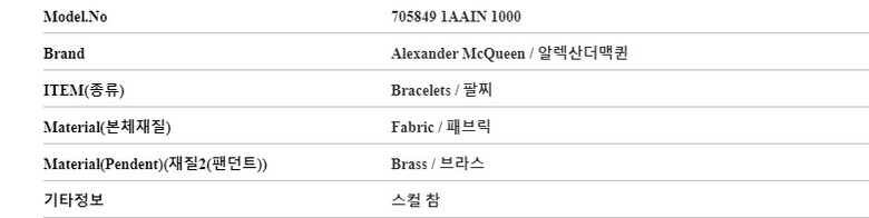 [명품] 알렉산더맥퀸 705849 1AAIN 1000 스컬 참 패브릭 팔찌