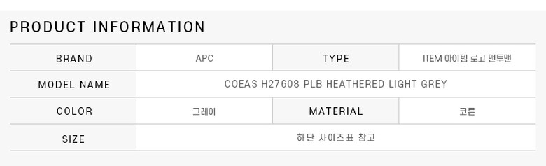 - #리본즈코리아 #COEASH27608PLBHEATHEREDLIGHTGREY #[명품] #아페쎄 #COEAS #H27608 #PLB #HEATHERED #LIGHT #GREY #ITEM #아이템 #남성 #맨투맨 #의류 #상의