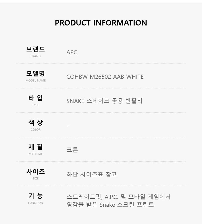 [명품] 아페쎄 COHBW M26502 AAB WHITE SNAKE 스네이크 공용 반팔티