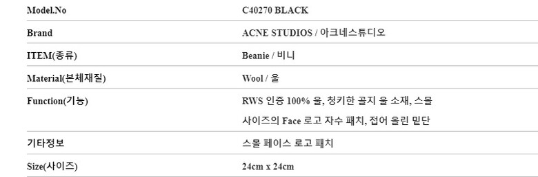 [명품] 아크네스튜디오 C40270 BLACK 900 페이스 로고 스몰 패치 비니