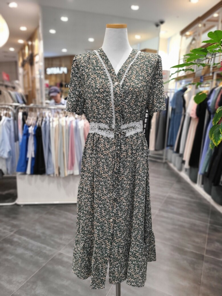 [플라스틱아일랜드] 앞 오픈 레이스 배색 원피스 (PR2WO065